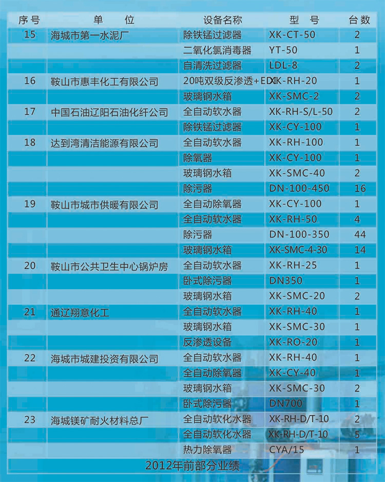 水處理設備系列|鞍山市益水環(huán)保設備有限公司銷售業績